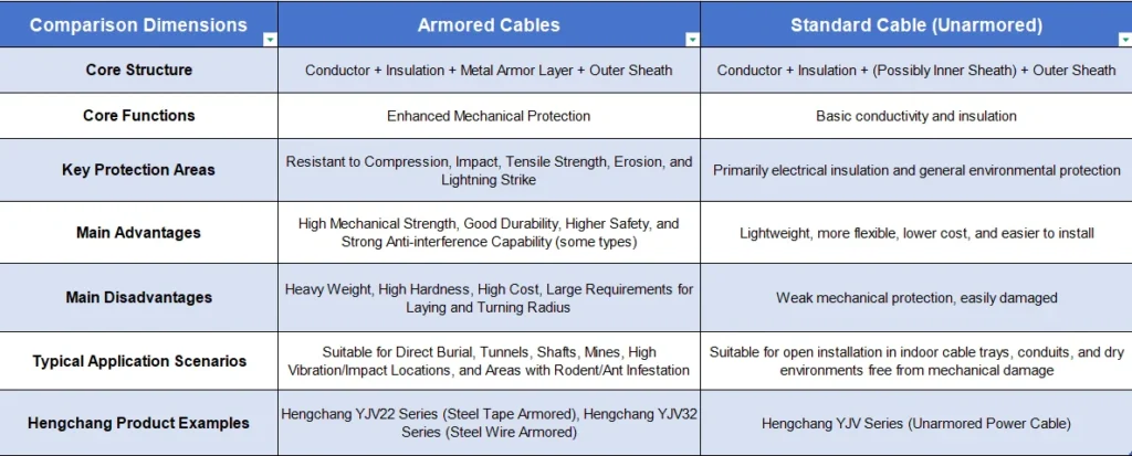 Beyond basic protection differences, choosing Hengchang armored cables offers you:
